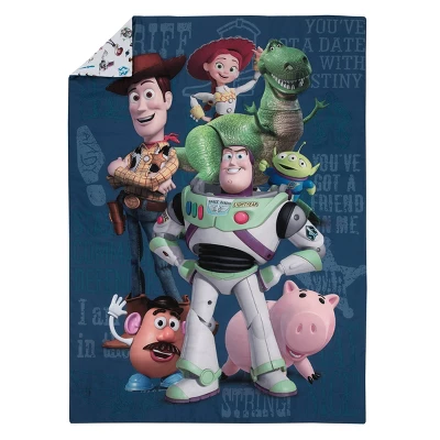 - The You’ve Got a Friend in Me 4 Piece Toddler Bedding Set includes a comforter, fitted bottom sheet, flat top sheet, and reversible pillowcase