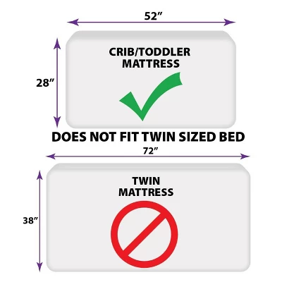 - Fits a standard size crib/toddler mattress that measures 28″ x 52″