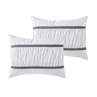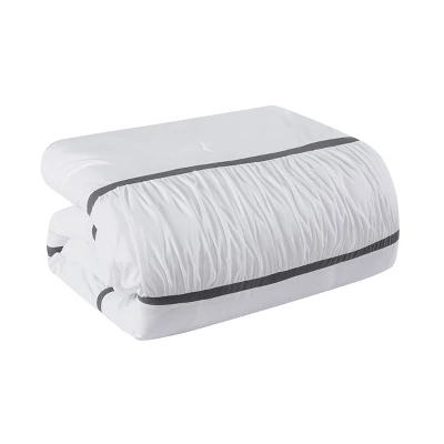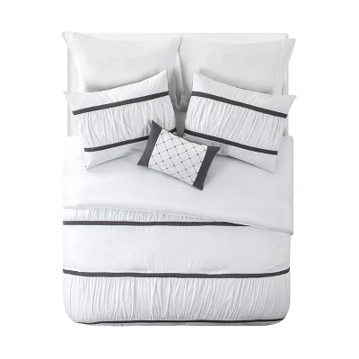 Add soft texture and elegant style to your bedroom décor with the VCNY Home Trisha Ruched Stripes Bed-in-a-Bag Comforter Set. An eye-catching addition to your master bedroom or guest room décor, this sophisticated comforter set features two-tone stripes and ruched accents for a soft, textured look and feel. This 8-piece bed set includes a comforter, shams, flat sheet, fitted sheet, pillowcases, and a decorative pillow to complete the look. The bedding set is made of 100% polyester microfiber fabric for softness and durability and is machine washable. You can keep the comforter set looking and feeling fresh by machine washing in cold water and drying on low setting.