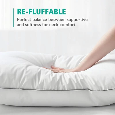 DescriptionPremium Comfort:Elevate your sleep experience with our premium pillows. Crafted for ultimate comfort, they are designed to provide the perfect balance between softness and support, ensuring you wake up refreshed and rejuvenated.High-Quality Materials:Our pillows feature a high-quality microfiber cover that is both soft and breathable, offering a cool and comfortable surface for a good night’s sleep. The cover is also easy to clean and maintain.Versatile Support:Whether you’re a side, back, or stomach sleeper, these pillows are designed to adapt to your preferred sleeping position. Their fluffy yet supportive filling cradles your head and neck, reducing discomfort and promoting better sleep.Durable and Long-Lasting:These pillows are built to last. They are constructed with care to maintain their shape and support over time, so you can enjoy their comfort for the long haul.Simple Usage Instructions:After receiving your pillows, open the package and gently tap them to help fluff them up. It’s recommended to wait for 48-72 hours to achieve the desired level of fluffiness and support. Then, place them on your bed for a night of ultimate comfort and restful sleep.