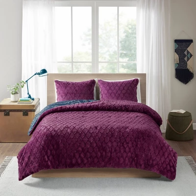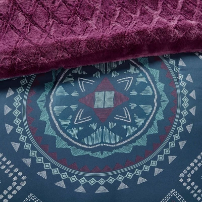 Double up on style and comfort with the Blair Reversible Comforter Mini Set. The reversible comforter features a printed geometric design that reverses to a diamond pressed faux fur, for a vibrant globally inspired look and incredibly soft deep. Two matching shams (1 for Twin Sizes) with hidden zippers on the sides mirror the reversible design of the comforter to complete the contemporary bedding set. Hypoallergenic polyester filling in the comforter provides exceptional warmth and comfort. Machine washable for easy care, this reversible comforter mini set offers an incredible value and style for your bedroom. This comforter set is also OEKO-TEX certified, meaning it does not contain any harmful substances or chemicals to ensure quality comfort and wellness.