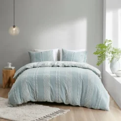 The Cecily Tufted Cotton Chenille Medallion Duvet Cover Set provides a soft and alluring update to your bedroom decor. This duvet cover features a 100% cotton with an elegant chenille medallion design centered on top of the bed. The matching shams (1 in Twin/Twin XL size) beautifully coordinate with the cotton duvet cover to create a stunning boho and globally inspired look. Machine washable for easy care, this cotton chenille duvet cover set easily adds a lovely appeal to your space. Button closures help secure a comforter insert within the duvet cover and the internal ties in the corners help prevent it from shifting. Due to the nature of the chenille fabric, some shedding will occur naturally in the first 3-4 washes.