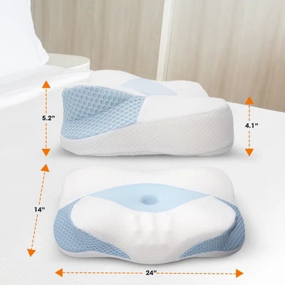 Sleep deeper and wake up refreshed with the Cheer Collection Cervical Memory Foam Pillow, designed to support your neck and shoulders in perfect alignment. Measuring 24″ x 14″ x 5.2″, this orthopedic contour pillow features a center cavity for head cradling and raised sides for shoulder support, making it ideal for back, side, and stomach sleepers. The premium memory foam adapts to your body shape while maintaining its structure night after night. Its breathable cover keeps you cool and dry, and the built-in zipper makes it easy to remove for machine washing. Whether you’re improving posture, relieving pain, or simply upgrading your rest, this pillow offers the comfort and stability you need