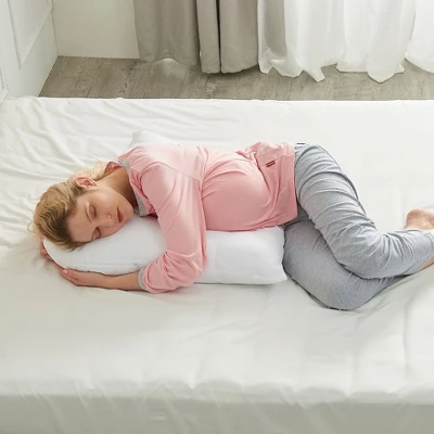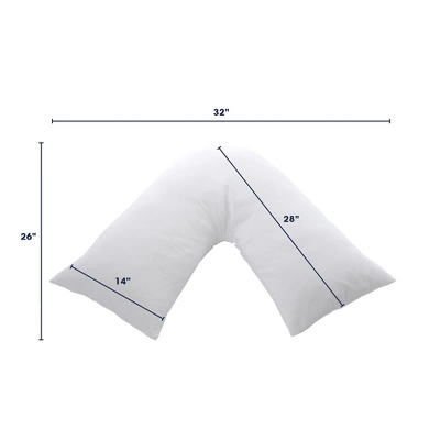 Discover unparalleled warmth, loft, and comfort with the Cheer Collection V-Shape Pillow. Crafted with high-quality microfiber and down alternative fill, this pillow indulges you in incredible coziness while providing a soft and breathable solution for allergy sufferers. Whether you’re sitting up in bed to read a book or browsing on your tablet, this V-shaped pillow offers excellent support, making your leisure time even more enjoyable.The hypoallergenic microfiber shell ensures a safe and comfortable sleep environment for everyone. The V-shape design, approximately 5 inches thick from side to side, offers superior support and cushioning, providing you with the ultimate comfort throughout the day.Measuring 14 inches wide by 28 inches long and approximately 5 inches thick, this oversized V-shaped pillow is a perfect addition to your daily routine. It’s not just a pillow; it’s a versatile solution for various needs, making it an excellent choice for expectant mothers seeking support to alleviate back pain and sciatica discomfort during pregnancy.By relieving pressure on various areas of your body, this pillow reduces the need to toss and turn during the night, allowing for a more restful sleep experience. Additionally, the pillow tucks comfortably under your arms, providing added support for your back and neck while aiding in temperature control for a better night’s rest.