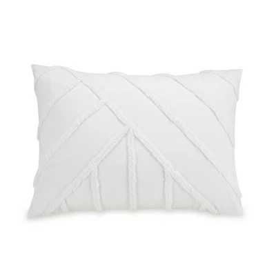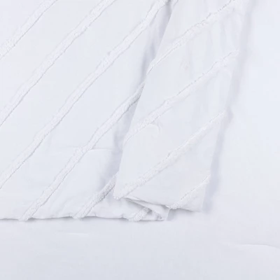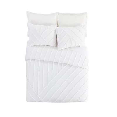 The coordinating shams mimic the design of the comforter. This all white design can easily layer with your existing bedding. This cozy comforter is made of all cotton with polyester fill.