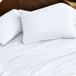 - Percale bed sheet set includes 2 pillowcases, 1 flat sheet and 1 fitted sheet