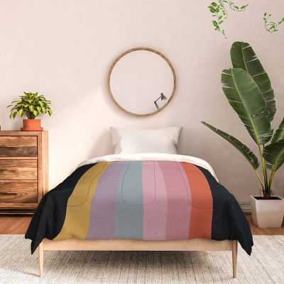 Deny Designs Emanuela Carratoni Retro Rainbow Comforter Bedding Set Black