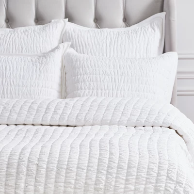 Elodie is as fashionable as it is functional. This sham is crafted of 100% cotton with the delicately ruched texture of hand-sewn seersucker stitching. This subtle yet beautiful texture is paired with a classic white colorway that is perfect for coordinating with all your favorite bedding and accessories.