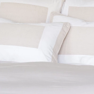 The Mire Duvet Cover is the epitome of effortless elegance. A white banded border creates a refined aesthetic atop an ivory chambray ground. This clean and chic duvet cover is begging to be layered with your favorite accents, or complete your refined look with the entire Mire collection.
