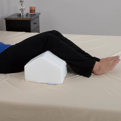 Relieve sore joints and tired muscles with this Fleming Supply Elevating Knee Wedge. The angled design lifts your knees while you lie on a bed or couch to take pressure off your legs and help improve circulation. A zippered cover comes off for easy maintenance, and the 20D foam core provides reliable support without any harsh, uncomfortable edges.