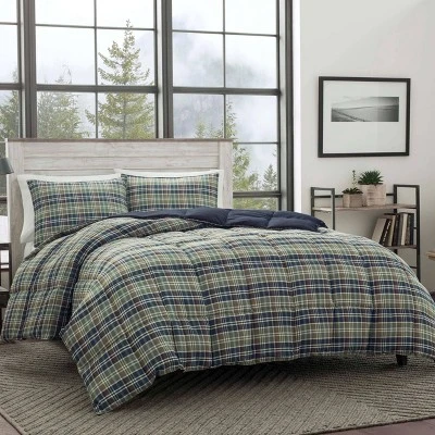 - Bring The Outside In With This Rugged Plaid In Bold Blues And Greens Reverses To A Solid Navy For An Alternate Look