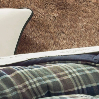 - Green And Blue Plaid Design Printed On A Comforter With A Navy Blue Reverse