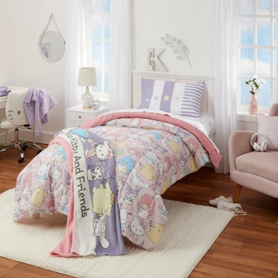 - HELLO KITTY DESIGN: Hello Kitty & Friends brings the world together through their soft & colorful personalities while providing cuddly experiences that can be shared with everyone. Complete their collection with this cute, multicolor comforter.
