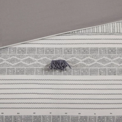 The INK+IVY Cody 3 Piece Cotton Comforter Set brings a smart combination of texture and style to your bedroom. This comforter features a striped print on 100% cotton with pompom and trim details for a casual, yet sophisticated look. Matching shams with overlap openings, on the back, coordinate perfectly with the comforter to complete this casual bedding set.