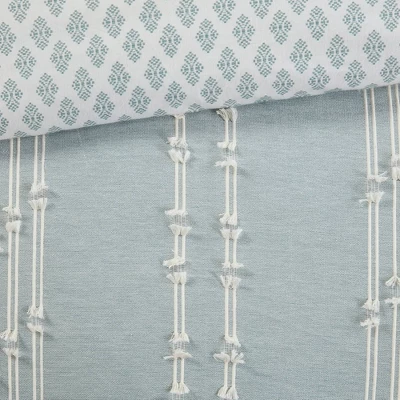 The INK+IVY Kara Cotton Jacquard Comforter Mini Set offers an eye-catching update to your bedroom decor. This comforter features a 100% cotton jacquard striped design on the face with a diamond print on the reverse. The comforter also has a clean, duvet-like finish with hidden bar tacking on top of the bed. Two matching shams coordinate with the comforter to complete a globally-inspired design. Machine washable for easy care, this unique comforter set brings style and comfort to your bedroom. This bedding set is also OEKO-TEX certified, meaning it does not contain any harmful substances or chemicals, ensuring quality comfort and wellness.