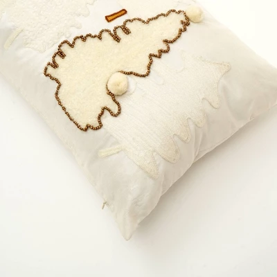 Celebrate the holiday season with our beautifully embroidered Christmas pillow featuring an elegant tree design with decorative pom-pom accents. These premium decorative pillows for bed and couch are crafted from soft polyester blend fabric with luxurious embroidery work that adds sophisticated festive charm.