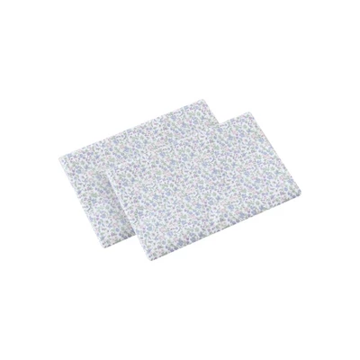 - Emogene percale pillowcase pair has a small scale floral print in shades of lavender.