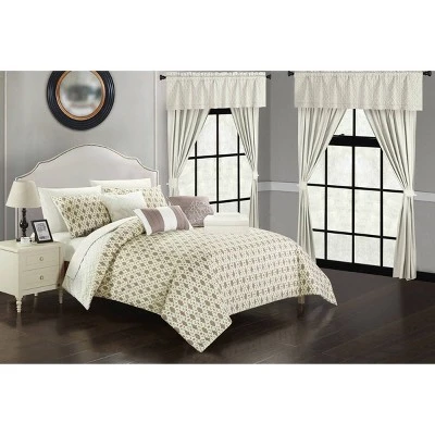 | Includes | 2 Window Valences, 3 Decorative Pillows, 2 Pillowcases, 4 Window Panels, 4 Curtain Tiebacks, 1 Flat Sheet, Comforter, 1 Fitted Sheet, 2 Shams |