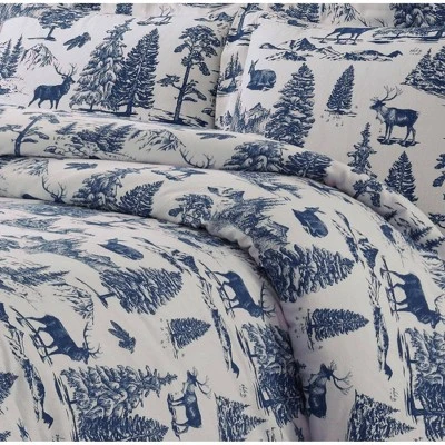 Mountain Toile Cotton Flannel Printed 3pc Oversized Duvet Set – Tribeca Living