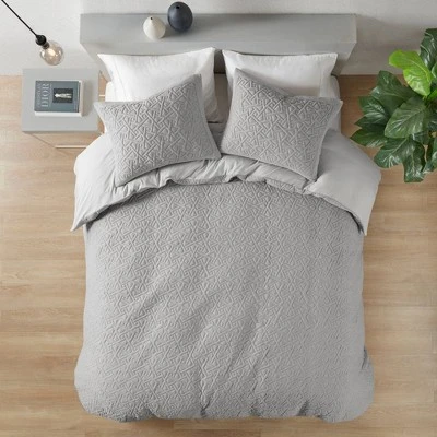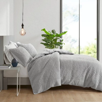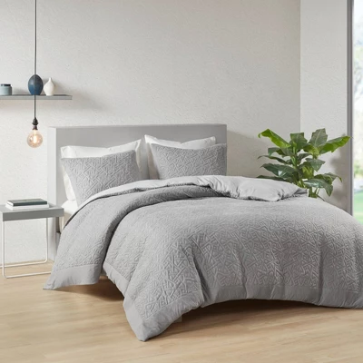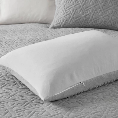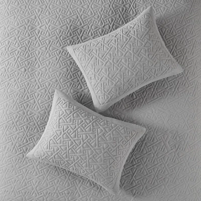 The simple elegance of the N Natori Origami 3 Piece Knit Quilted Top Oversized Comforter Mini Set offers an elevated update to your bedroom. Made from rib sweater knit fabric, this modern comforter flaunts an embroidered pattern for an upscale quilted top look. The 2 matching shams repeat the modern geometric design of the comforter and feature zipper closures to provide a clean finished edge. Oversized for better coverage on high depth mattresses, this quilted comforter set adds a super soft and sophisticated charm to elevate your bedroom decor. Machine washable for easy care. Coordinating decorative pillow is available and sold separately. This bedding set may come in rolled or compressed packing and will need to be fluffed up.