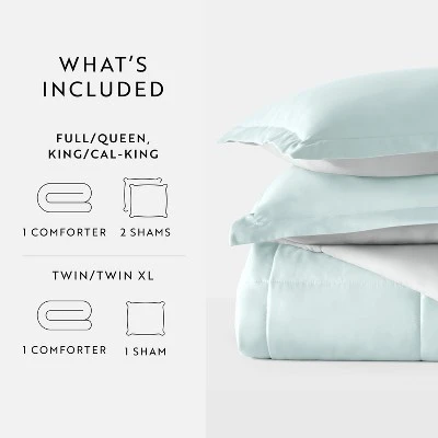 Give your bedding a brand new look and feel with this all season reversible down alternative comforter set. Presenting a quality alternative to down, it’s incredible loft and down like feel makes it the perfect comforter to keep you cozy all year round. The end to end baffle box construction with reinforced stitching helps to eliminate the need for regular fluffing by preventing the fibers from shifting. Featuring a reversible design of aesthetically matched colors, this set is ideal for making quick style changes to your sleep space! The set includes 3 pieces(1 Comforter and 2 Shams), and the Twin/TwinXL set comes as a 2 piece set (1 Comforter and 1 Sham).