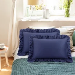 PiccoCasa Pure Cotton Soft Envelope Closure Ruffle Pillowcases 2 Pcs