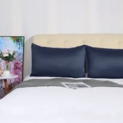 PiccoCasa Silk Satin Luxury Cooling Pillowcase Navy Queen 20″x30″ 4 Pcs