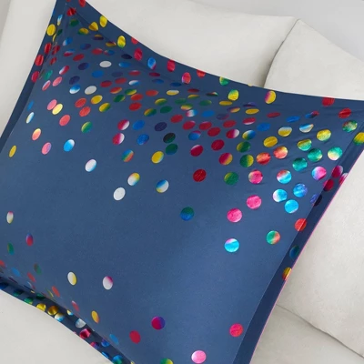 Make your bedroom sparkle with the Intelligent Design Thea Rainbow Iridescent Metallic Dot Duvet Cover Set. Flaunting all-over iridescent metallic dots, this OKEO-TEX certified duvet cover brings a vibrant and fun look to your bedroom. The matching shams (1 in Twin/TwinXL) complete the whimsical charm of the rainbow bedding to fully brighten your bedroom.