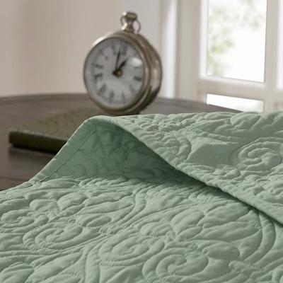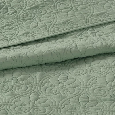 The Vancouver Reversible Bedspread Set offers a charming cottage-inspired update to your bedroom. The reversible bedspread and shams (1 in Twin/Twin XL) flaunt a classic stitch pattern that creates a rich depth and texture on the face of the bedding set. Pre-washed cotton filling provides added comfort and durability, while the oversized dimensions allow the bedspread to drape better. This bedspread also has an antimicrobial treatment that provides built-in freshness protection, reducing the growth of odor causing bacteria to keep fabric lasting longer.