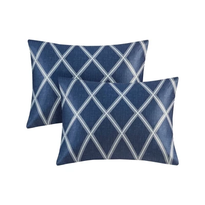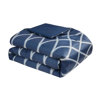 Zara Charmeuse Geo Print Comforter Bedding Set Navy